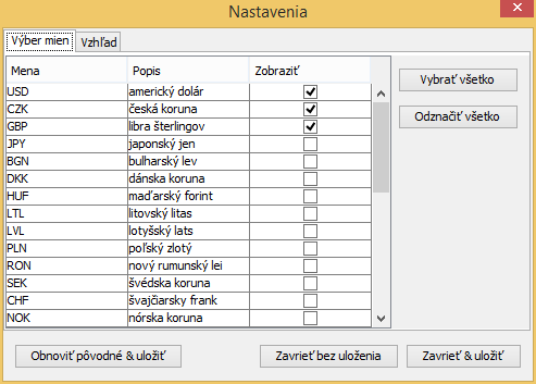 Program Kurzy 2 slúži na pohodlné a rýchle vyhľadanie výmenného kurzu meny euro k iným menám.